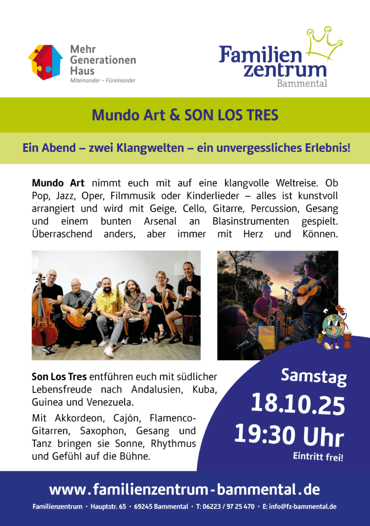 Am Samstag, den 18. Oktober erwartet euch im Familienzentrum Bammental ein außergewöhnlicher Musikabend.