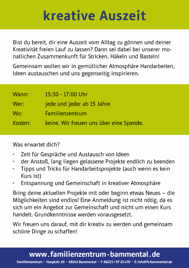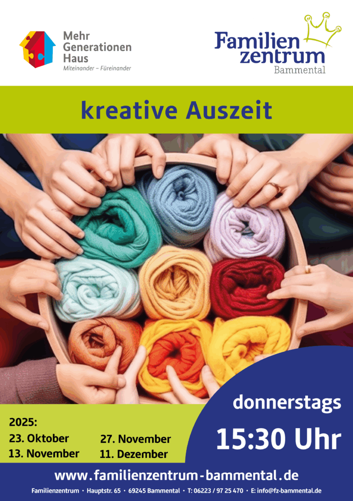 am donnerstags von 15:30–17:00 Uhr könnt ihr euch kreativ austoben. Das offene Angebot lädt ein zum Gestalten, Entspannen und einfach Mitmachen.