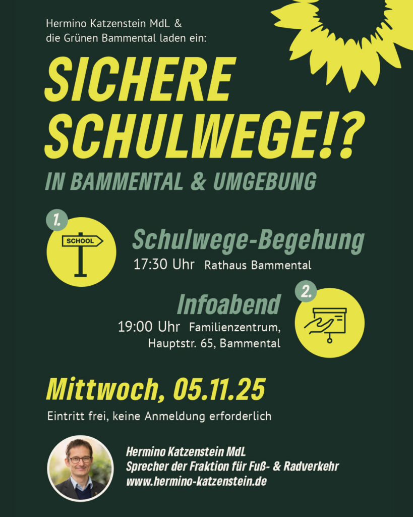 Am Mittwoch, den 05. November 2025, lädt die Gemeinde Bammental alle interessierten Bürgerinnen und Bürger zu einer öffentlichen Veranstaltung rund um sichere und kinderfreundliche Schulwege ein. Es erwarten euch zwei Programmpunkte: