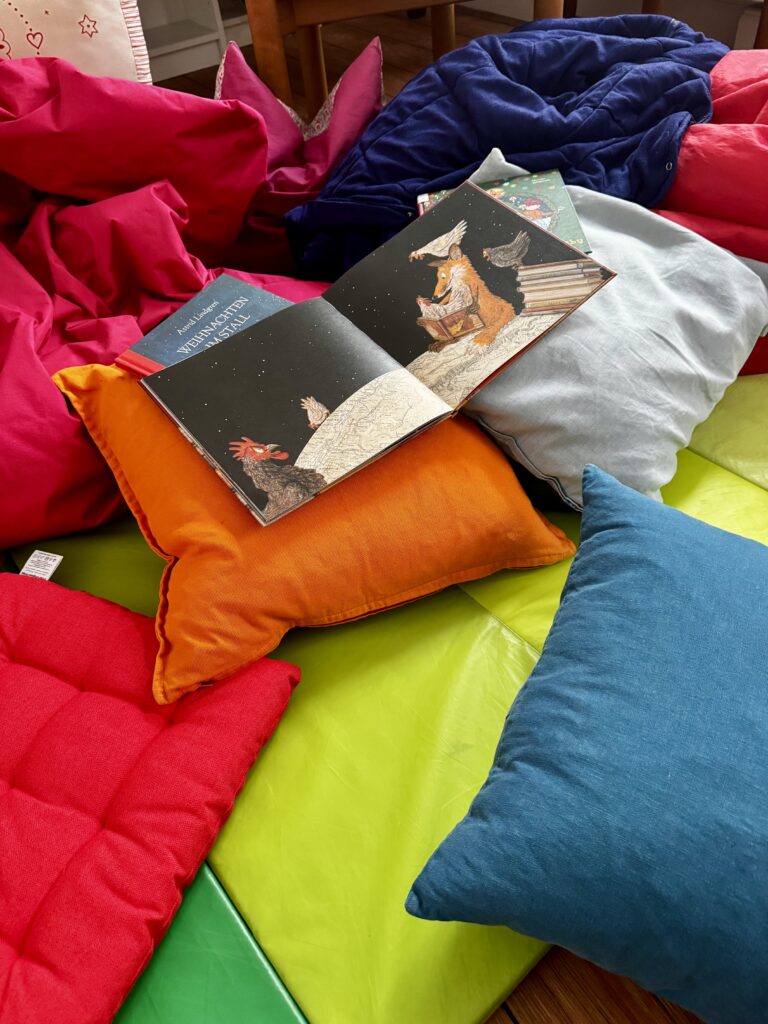Angelika wird an mehreren Nachmittagen spannende, lustige und herzerwärmende Geschichten vorlesen. In unserem Spielzimmer, das mit vielen weichen Sitzsäcken ausgestattet ist, entsteht eine ganz besondere Wohlfühlatmosphäre – perfekt, um sich einzukuscheln und den Alltag für einen Moment hinter sich zu lassen.